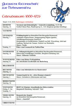 Hier findet Ihr unser aktuelles Calendarium. Weiters seht Ihr unseren Jahresplan mit übersichtlicher Darstellung unserer Kapitel, Feste und Fahren.