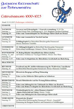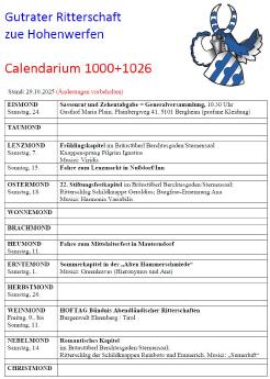 Hier findet Ihr unser aktuelles Calendarium. Weiters seht Ihr unseren Jahresplan mit übersichtlicher Darstellung unserer Kapitel, Feste und Fahren.
